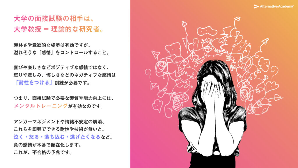Alternative Academy®︎では、この想定外の質問まで対策することを重視しています。